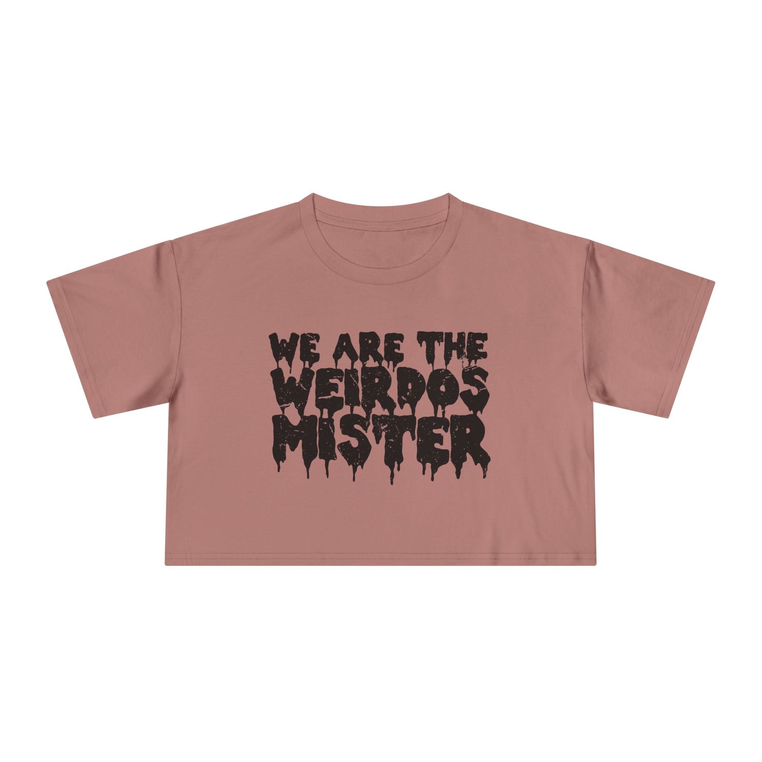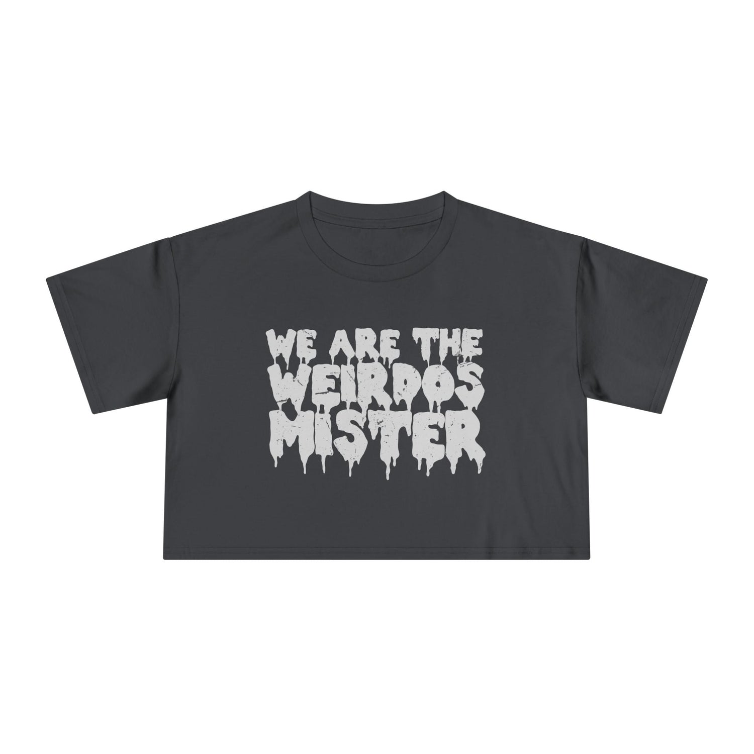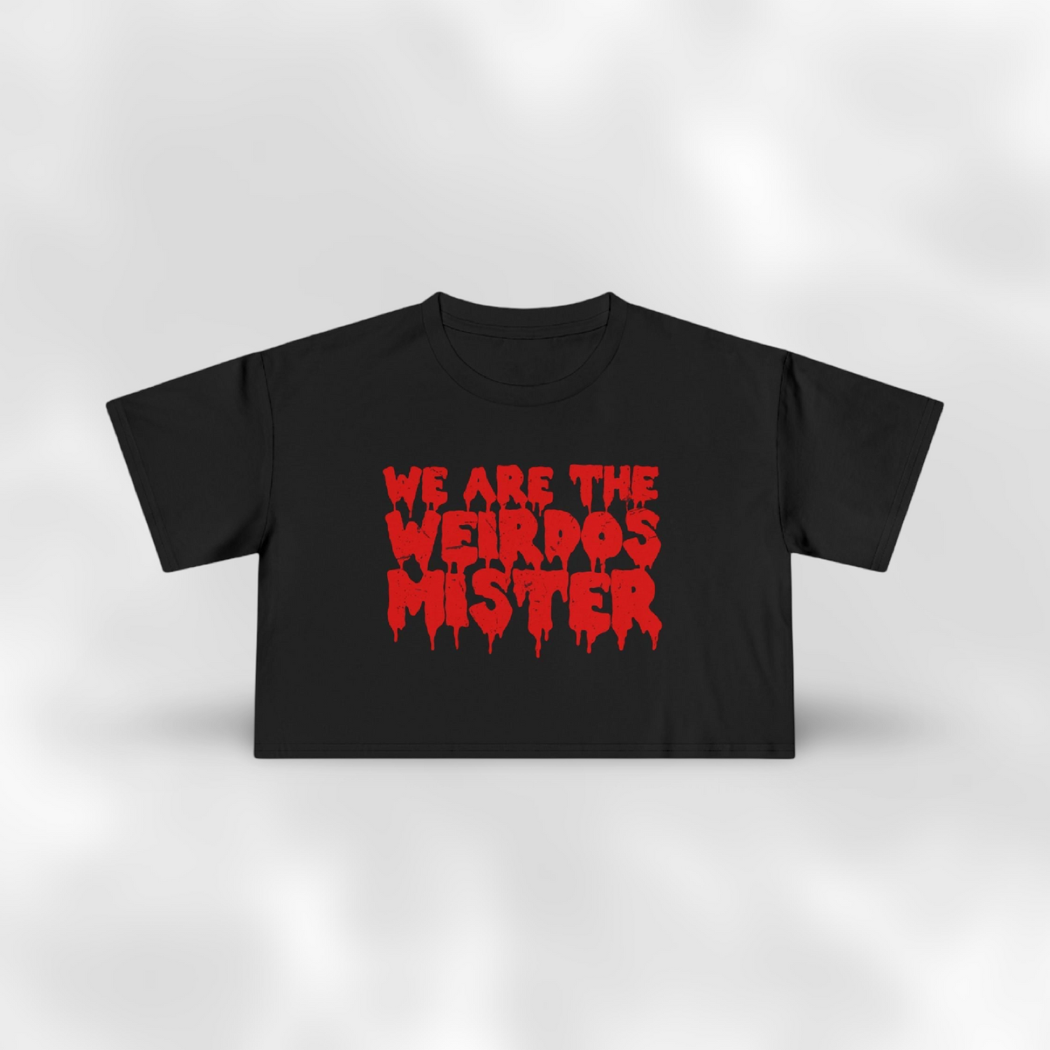 Perfect for witches and weirdos, this cropped tee features the iconic We Are the Weirdos Mister line in a dripping horror font. Crafted from 100% combed cotton, the lightweight fabric, dropped shoulders, and breezy cut make it ideal for summer spells and late-night mischief. Preshrunk to stay spooky wash after wash.